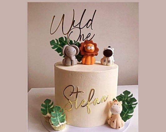 Safari Jungle Cake Topper | Personalised First Birthday Cake Decoration | Wild One Animal Party Theme