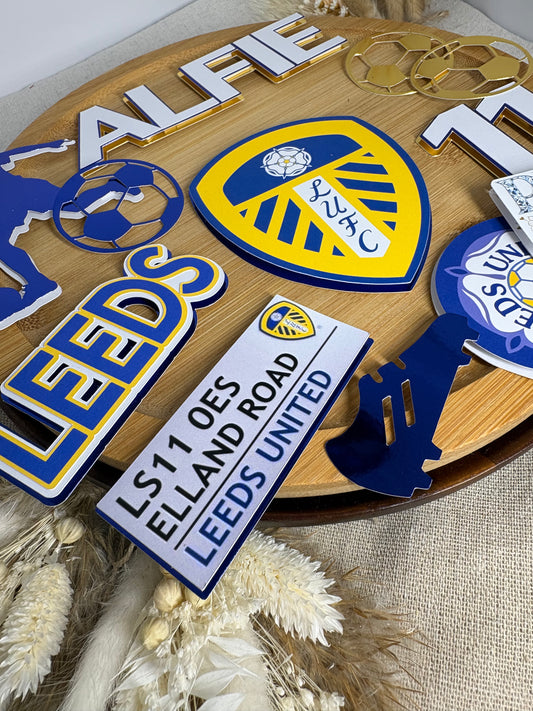 Personalised Leeds United Football Cake Topper Set – Custom Birthday Cake Decorations