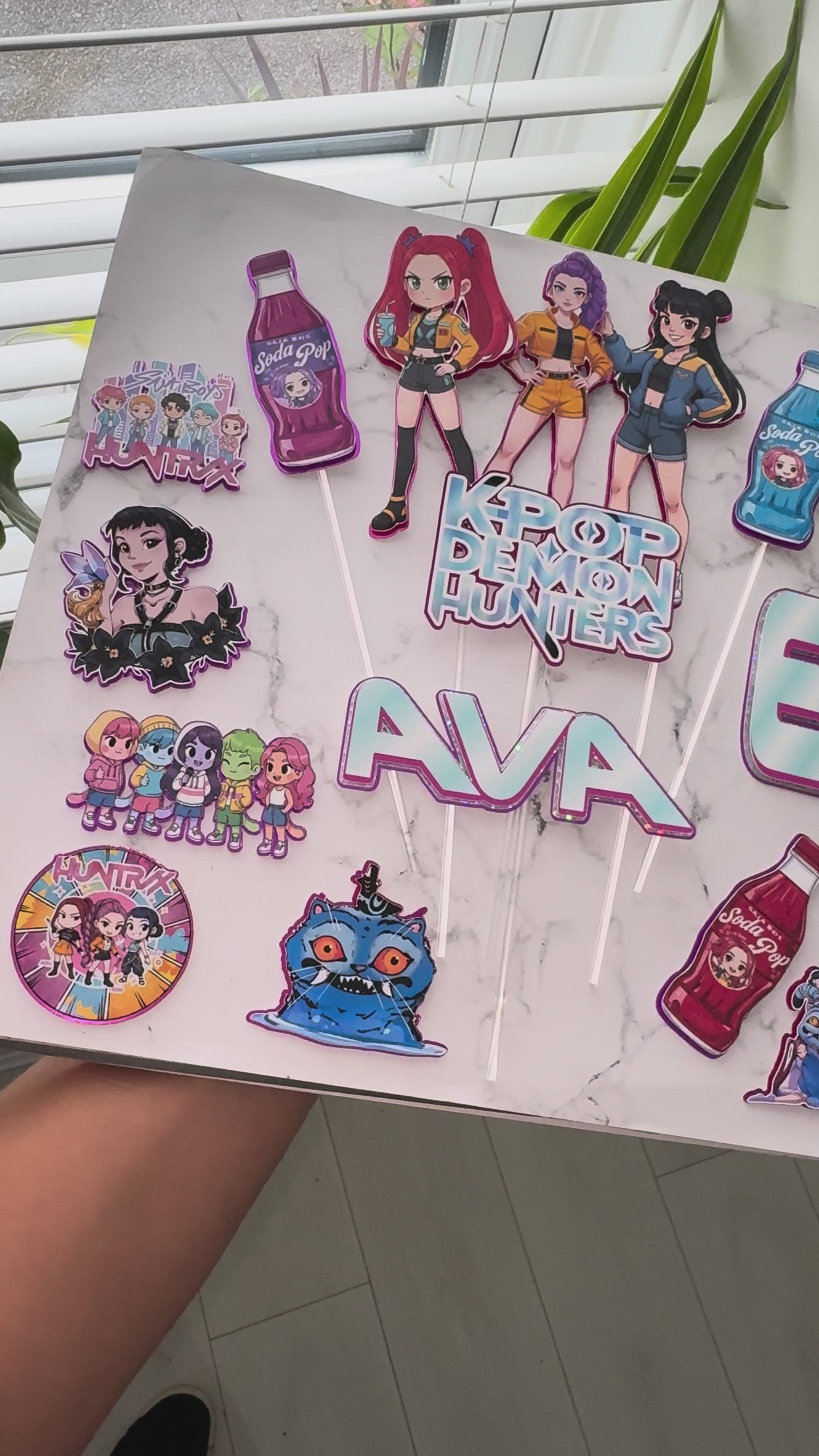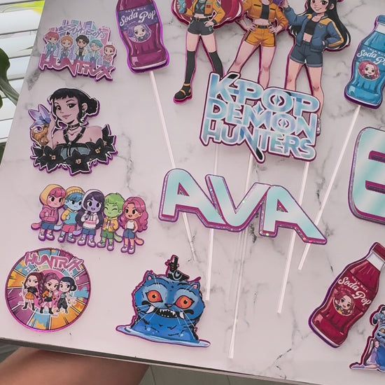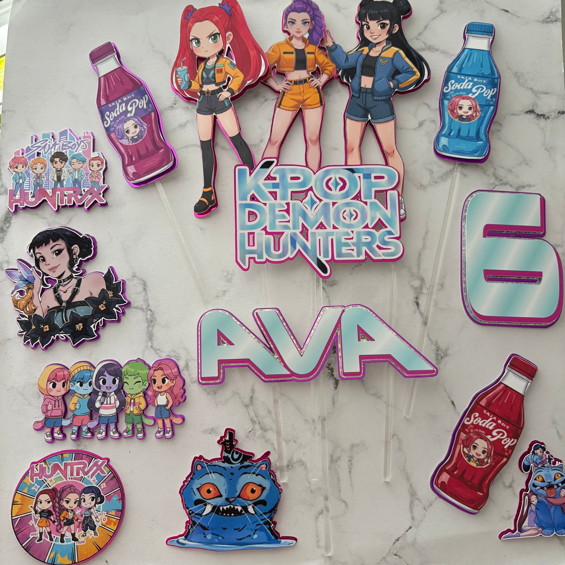 Unleash the energy with this bold and dynamic K-Pop Demon Hunter Cake Topper Set – the ultimate finishing touch for any anime or gamer-themed birthday cake! Featuring striking character art, soda pop details, and a bold K-Pop Demon Hunter logo, this set brings an electrifying 3D effect to your cake with layered design and vivid colour.
