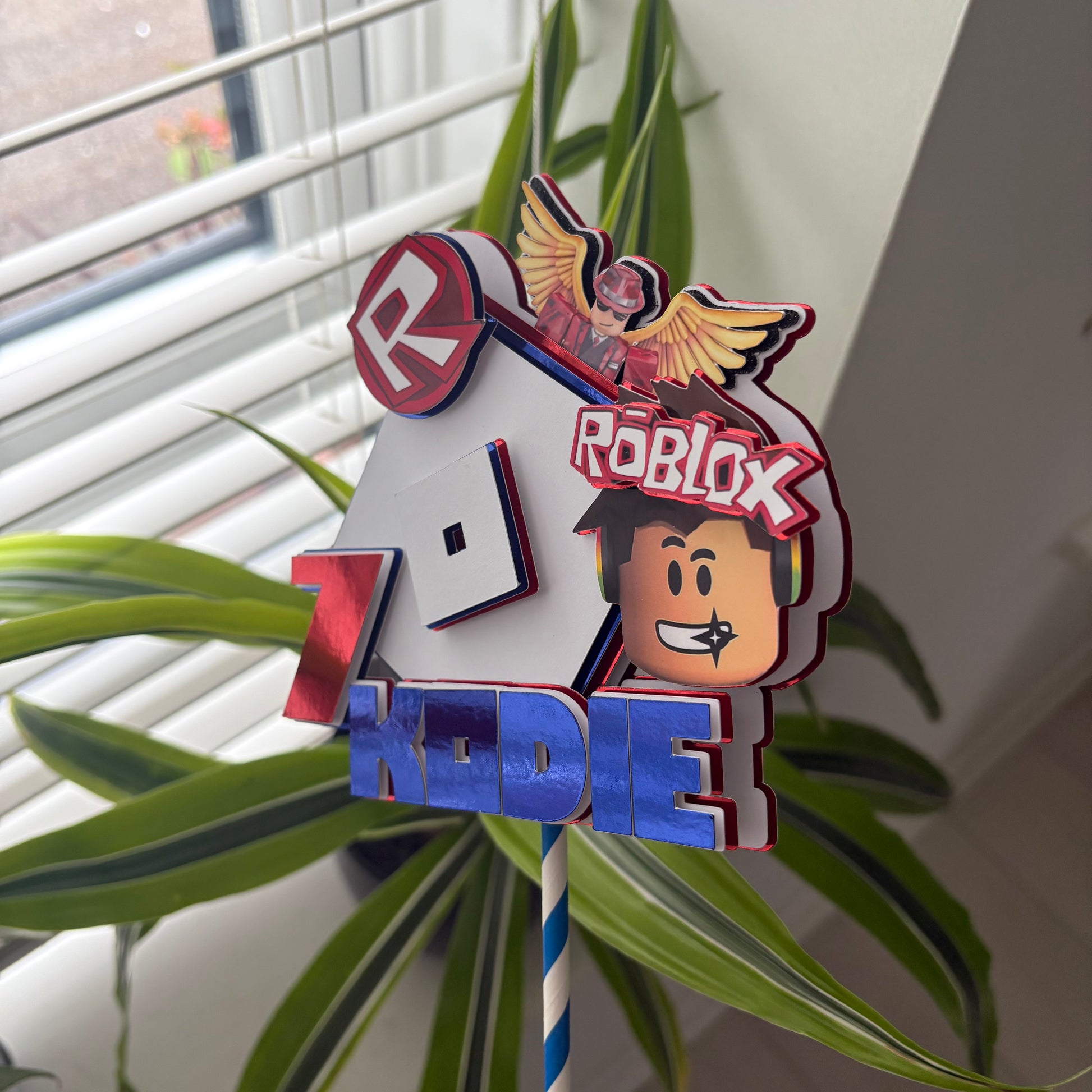 Roblox Cake Topper | Personalised Gamer Birthday Decoration | Custom Name & Age Cake Topper