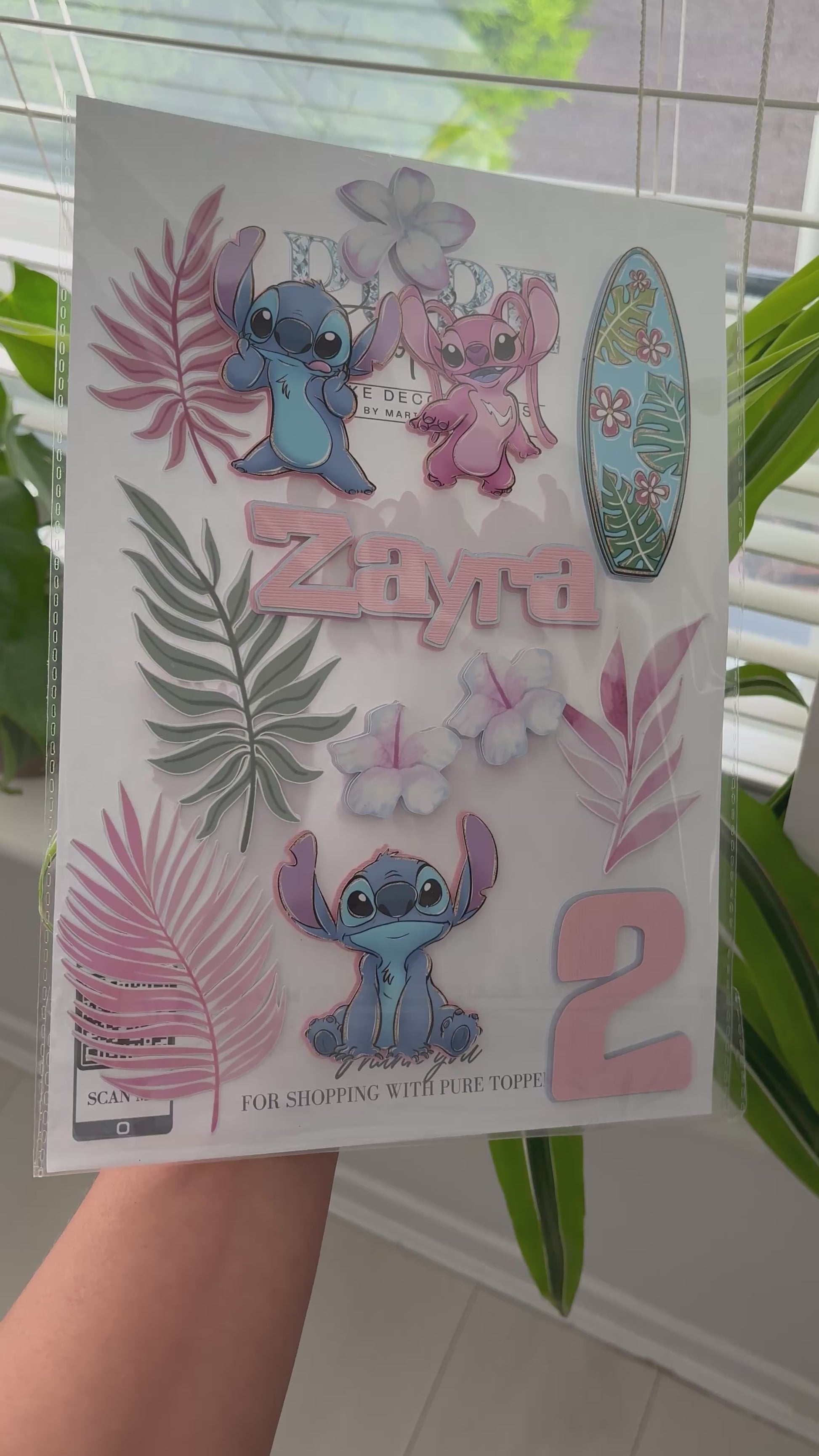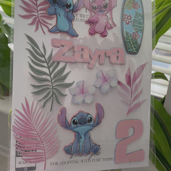 Stitch Cake Topper – Personalised Angle & Stitch Birthday Cake Decoration | Tropical Cake Topper | Custom Luau Party Cake Decor